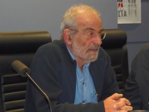 Ένας από τους ομιλητές ο πρώην αρχηγός του ΣΥΡΙΖΑ Αλέκος Αλαβάνος που πλέον εκπροσωπεί το Μέτωπο Αλληλεγγύης και Ανατροπής που αντιπροσωπέυει λεγόμενο «σχέδιο Β», δηγλαδή την έξοδο από το ευρώ. Ο κ. Αλαβάνος τόνισε ότι «υπάρχει μια εκστρατεία φόβου σε σχέση με το θέμα της ευρωζώνης και του ευρώ. Αυτό που χρειάζεται είναι μια ειλικρινής επαφή με τον κόσμο προκειμένου να βρούμε το δρόμο που απαιτεί πολύ μεγάλες αλλαγές, για να φύγουμε από αυτό το καταστροφικό τέλμα στο οποίο βρισκόμαστε ως χώρα». «Ο ΣΥΡΙΖΑ» πρόσθεσε «έχει τη θέση ότι η έξοδος από το ευρώ είναι εθνική καταστροφή, μια θέση που......εντάσσεται στη λογική του σχεδίου Α, η οποία έχει οδηγήσει εδώ που είμαστε τώρα». «Χρειάζονται πολύ μεγάλες τομές και η Αριστερά πρέπει να τις υποστηρίξει» κατέληξε.